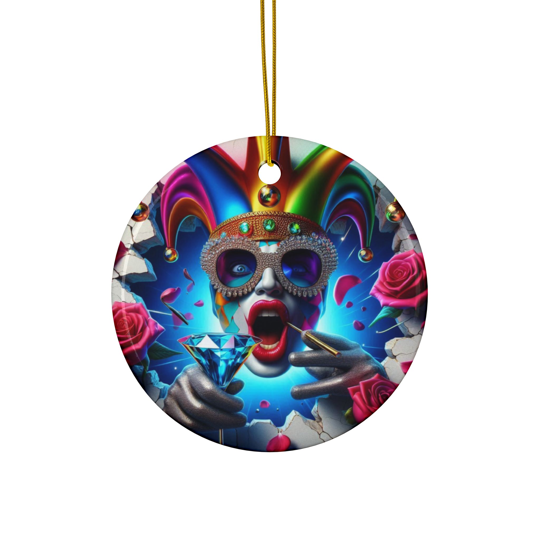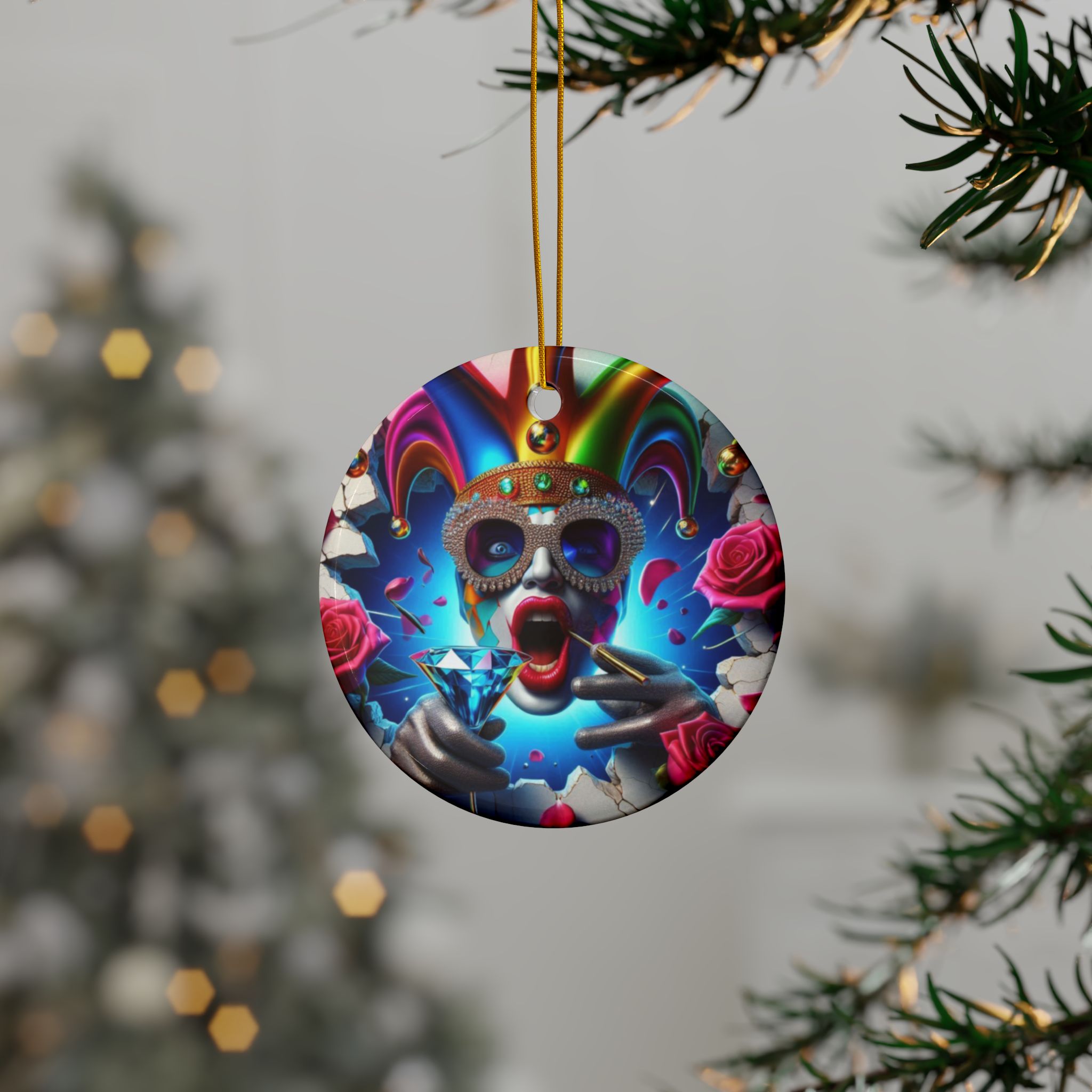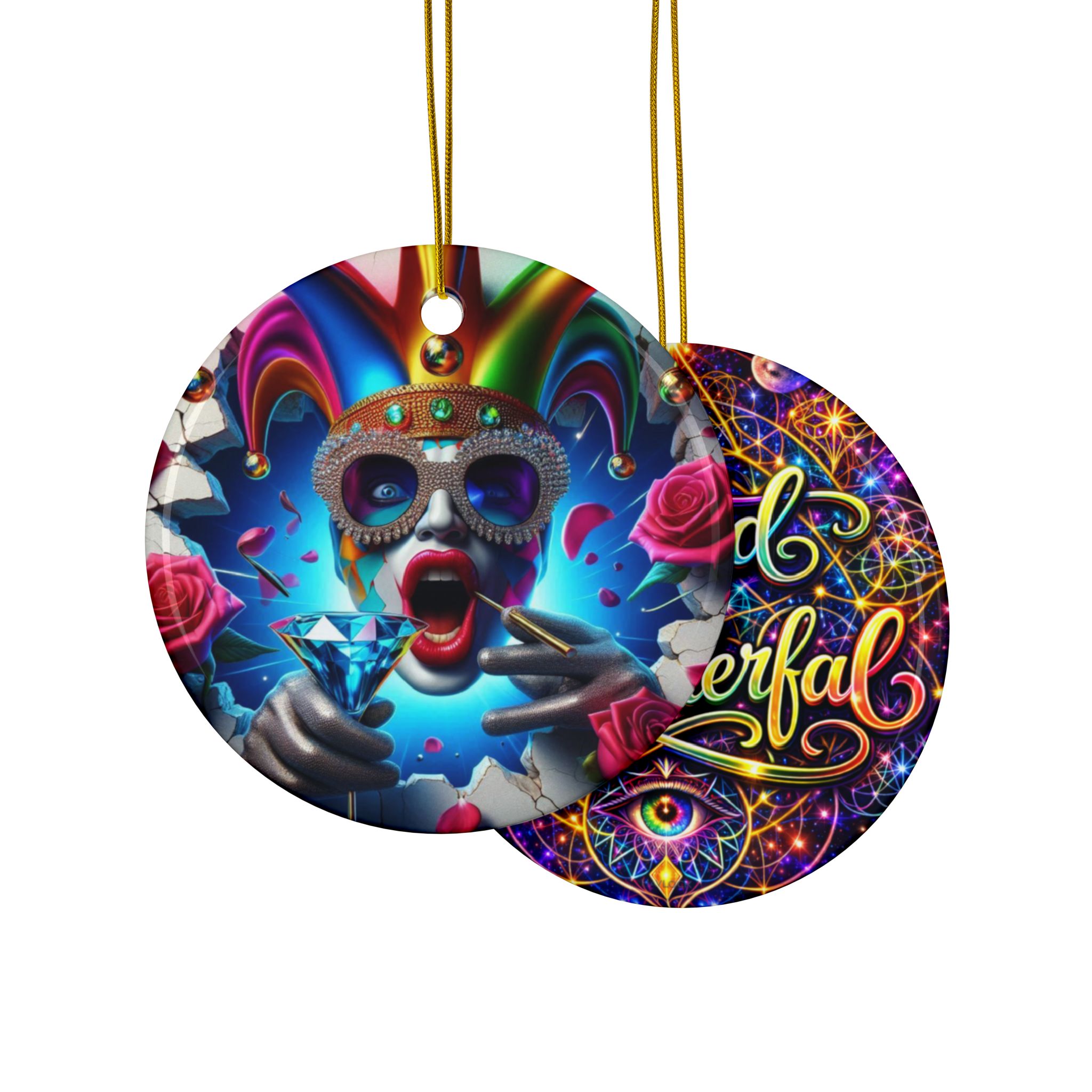 With a smooth glossy finish and vibrant double-sided artwork, these ornaments bring a bold artistic presence to any setting—whether displayed in your home, studio, office, or creative sanctuary. Crafted from 100% ceramic and finished with a gold hanging string, they offer a refined way to showcase visionary art in a compact, collectible form.