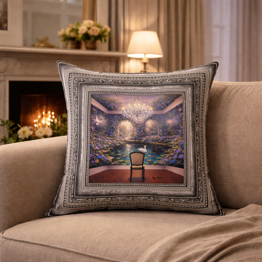 A Room With No Walls imagery presents a room that feels both intimate and expansive, where sky-like walls soften the sense of enclosure and familiar elements quietly anchor the space. A solitary chair and a glowing chandelier act as subtle points of pause, encouraging stillness, reflection, and presence. Designed to gently shift the atmosphere of a room, this imagery brings a sense of openness and emotional calm—enhancing a space without visual noise and inviting ease, contemplation, and quiet grounding into the environment.