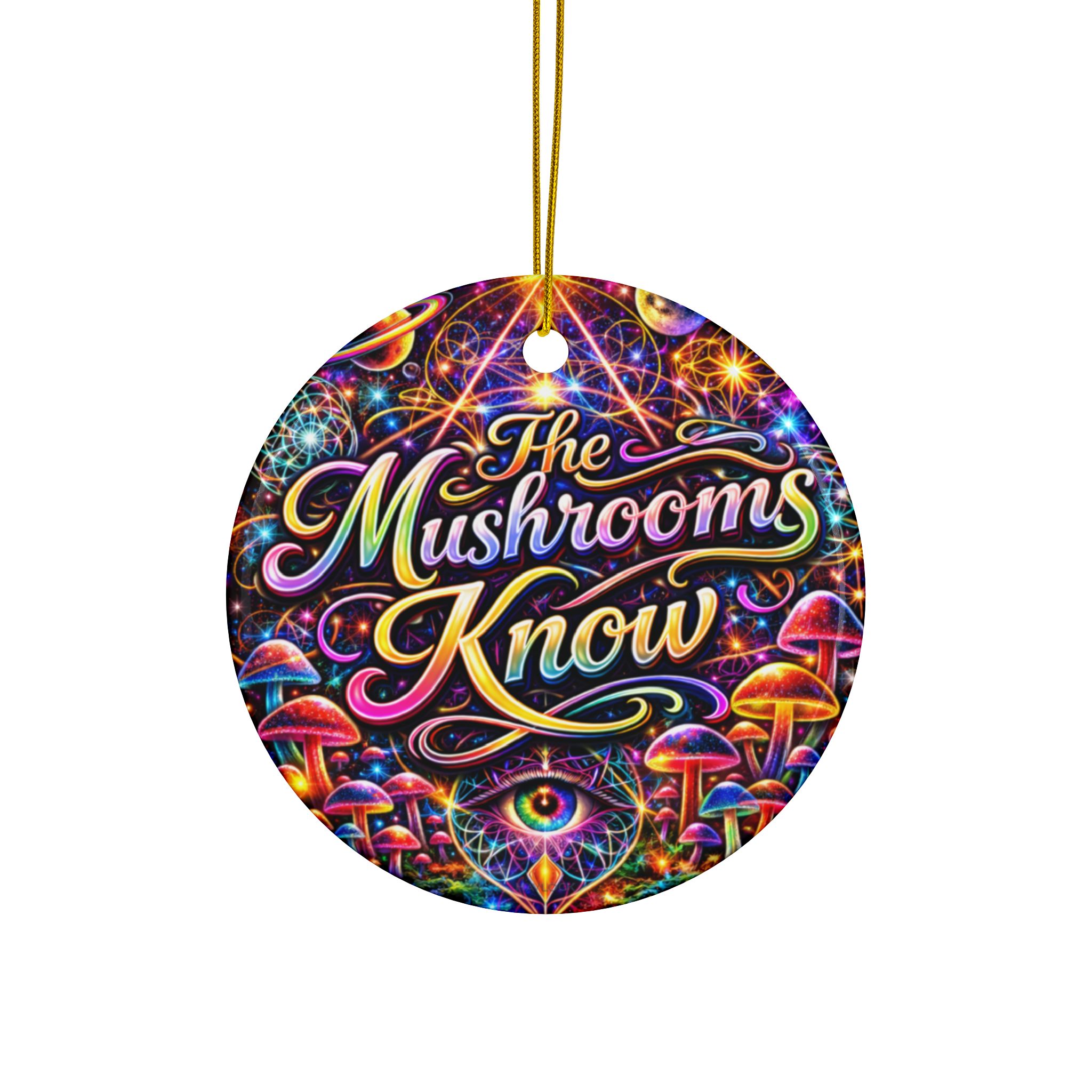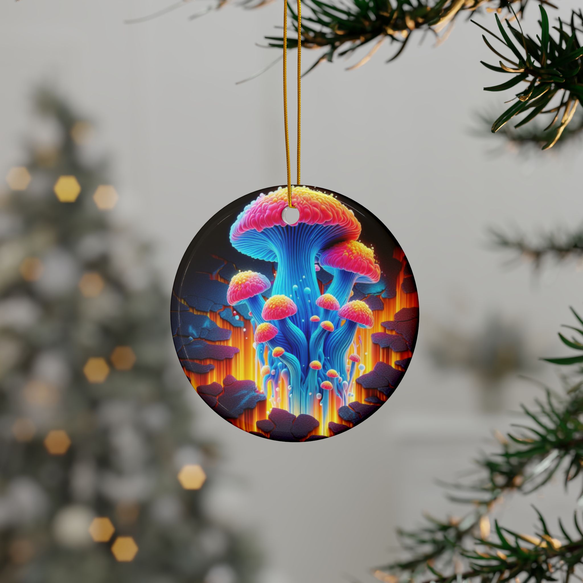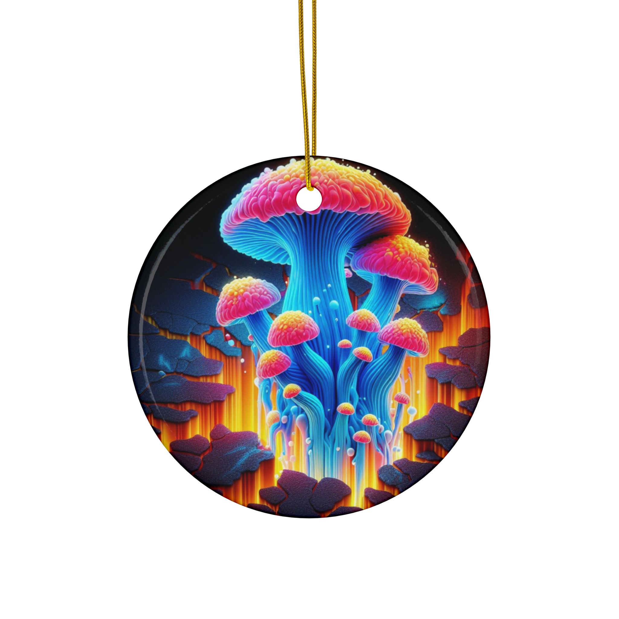 Finished with a smooth glossy surface and vibrant double-sided printing, the ornament displays beautifully from any angle. Crafted from durable 100% ceramic and paired with a gold hanging string, it can be displayed year-round in homes, studios, offices, or creative environments.