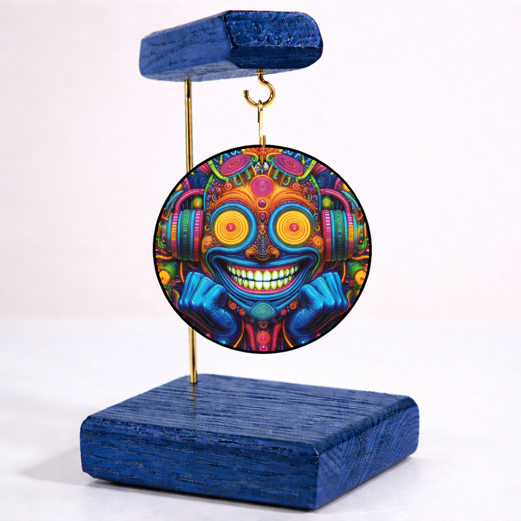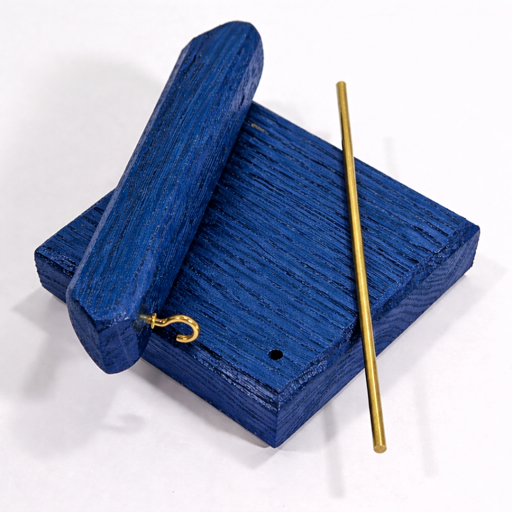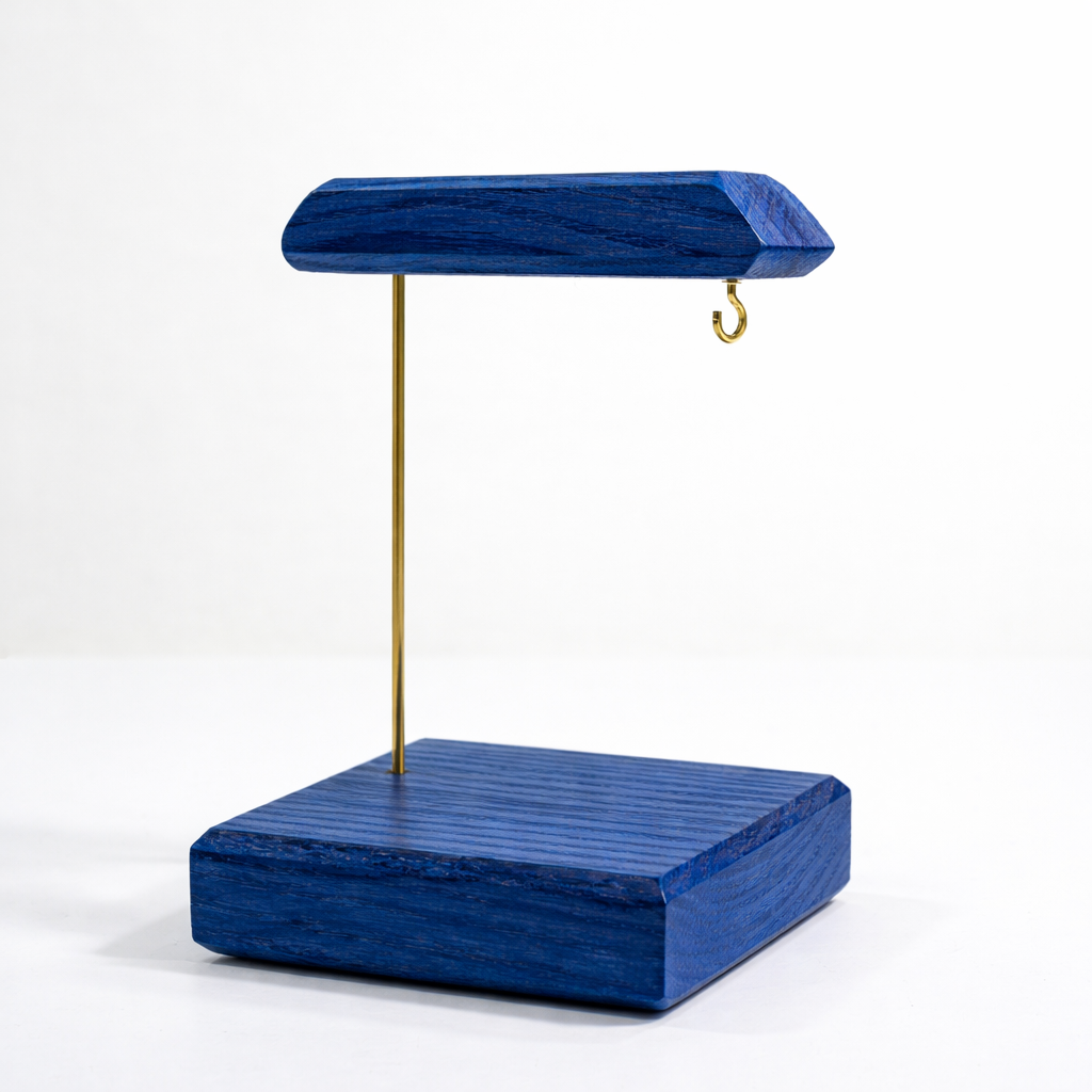 Handmade Wooden Ornament Display Stand – Elegant Brass & Blue Oak Wood Holder for Ceramic Ornaments, Collectibles, and Keepsakes