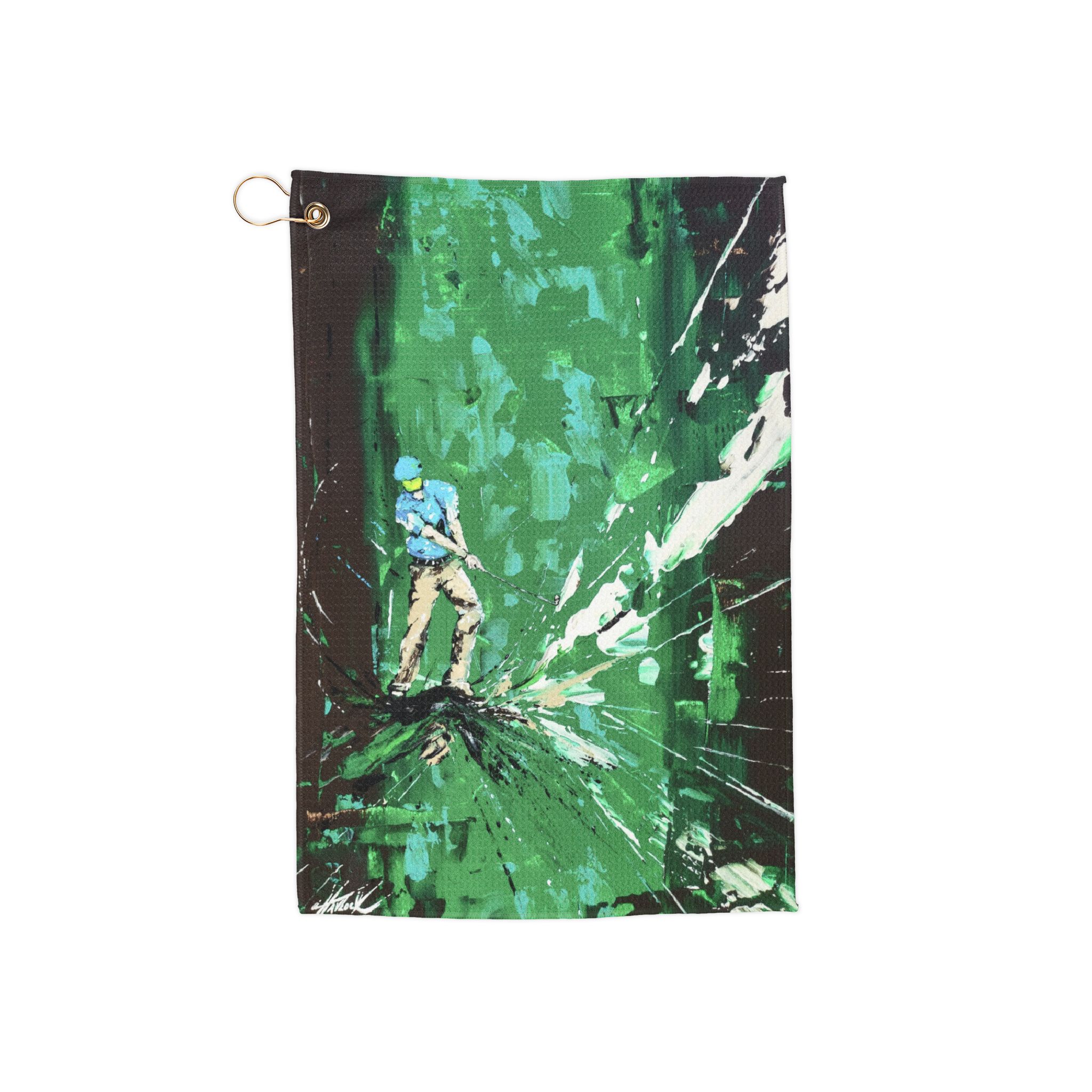 Bring art to the course with Swingers golf towels—where expressive motion meets everyday performance. Featuring artwork from the Swingers series, these towels pair bold visual energy with practical function, elevating both your game and your style. Crafted from a durable microfiber blend, they’re ideal for cleaning clubs, drying hands, and staying sharp through every round. Striking yet refined, they make standout gifts for golfers, tournaments, corporate outings, and special events—an art-forward accessory designed to be used, seen, and remembered.
