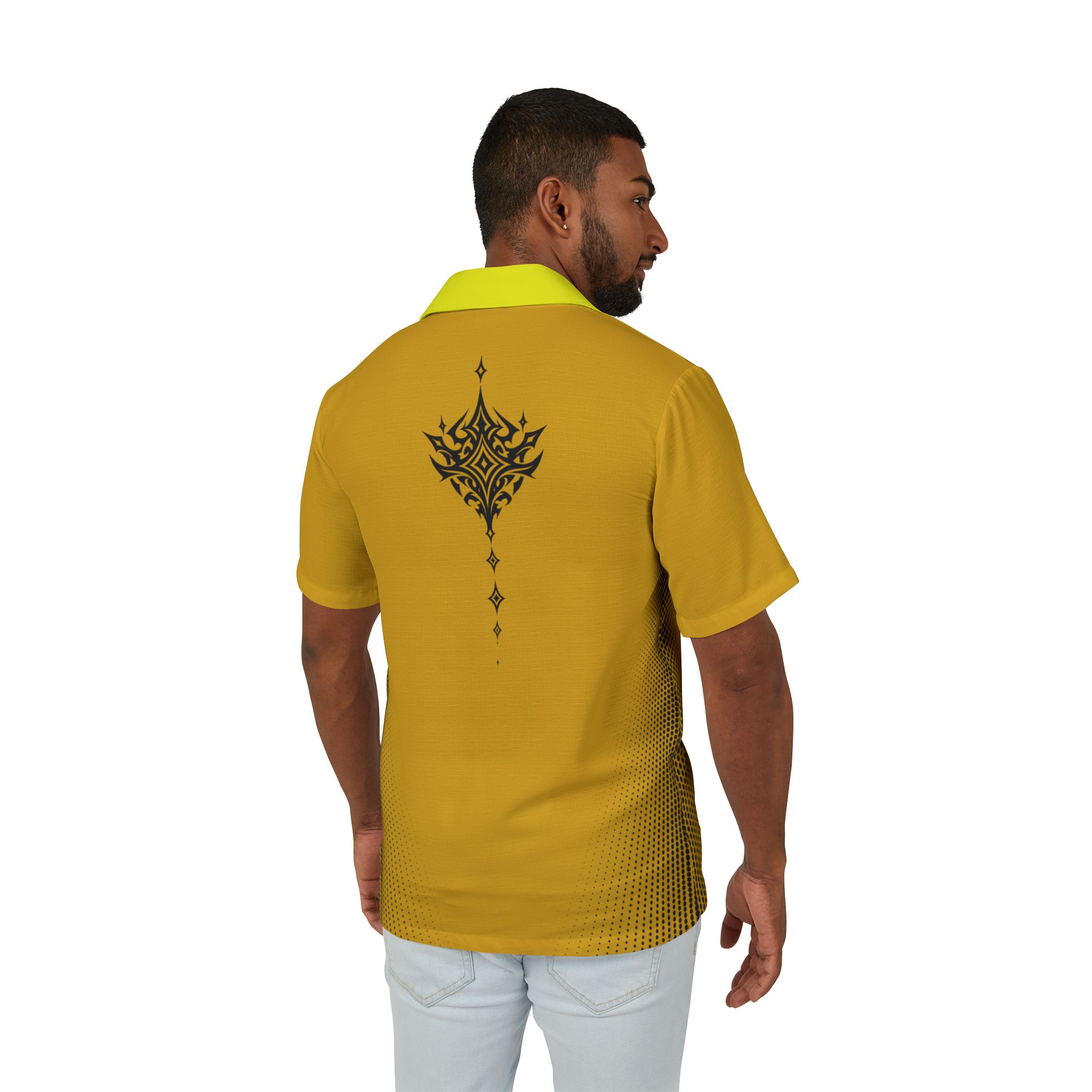 Men's Button Up - BRIGHT STATE - Sun Shine - Classy Casual Sharp Surreal Hawaiian Bowling Camp Shirt - Sigil SeriesMen’s Button Up – BRIGHT STATE – Sun Shine – Classy Casual Sharp Surreal Hawaiian Bowling Camp Shirt – Sigil Series