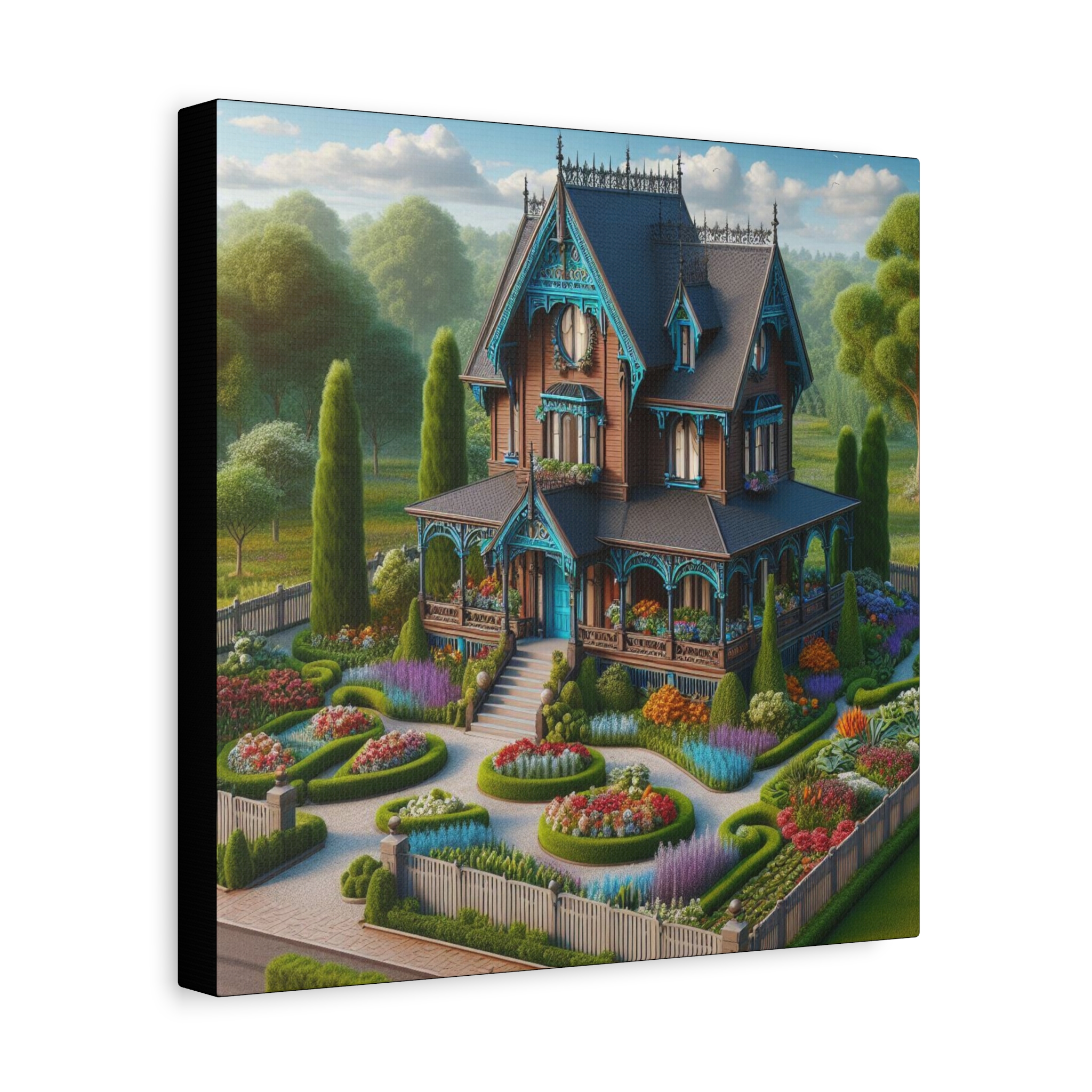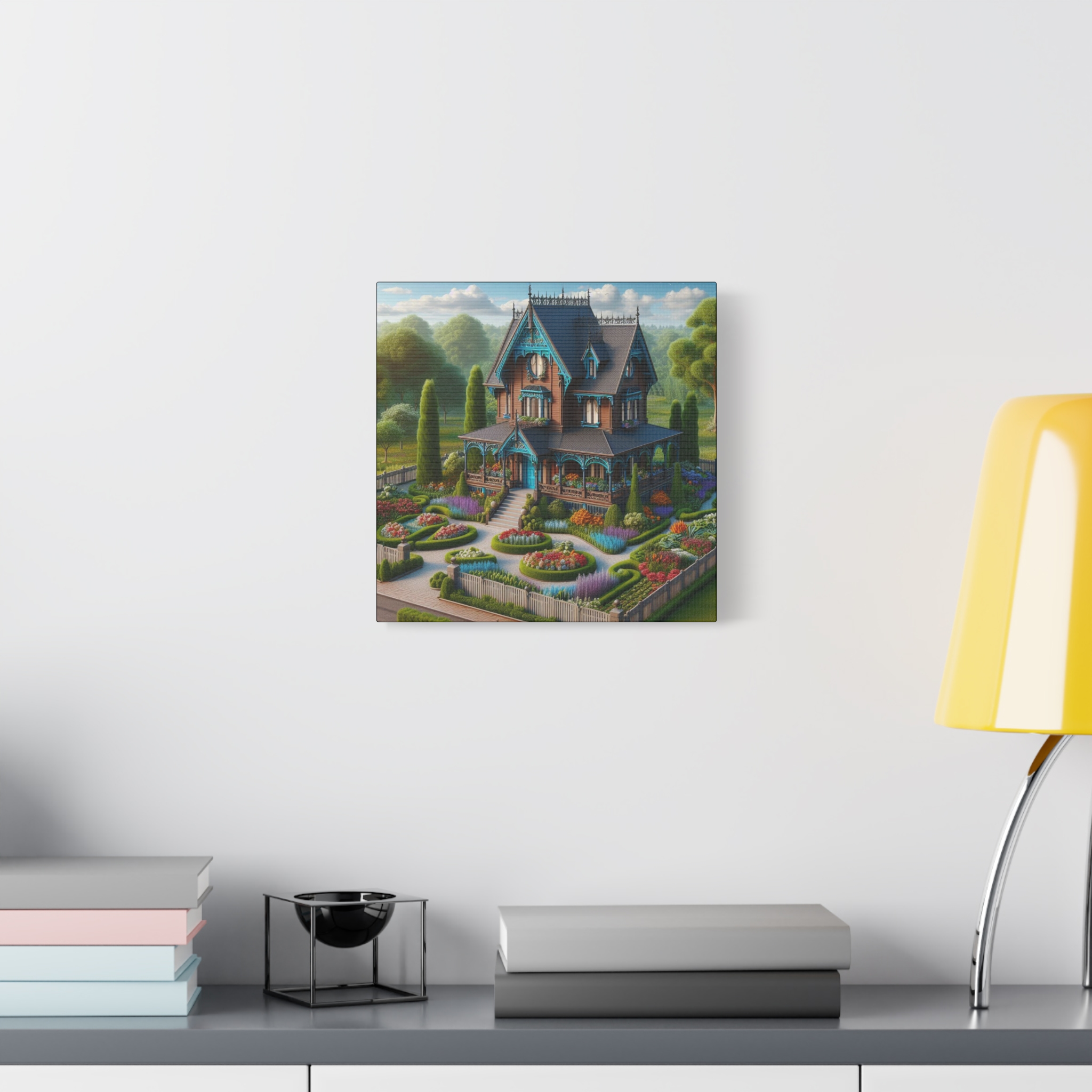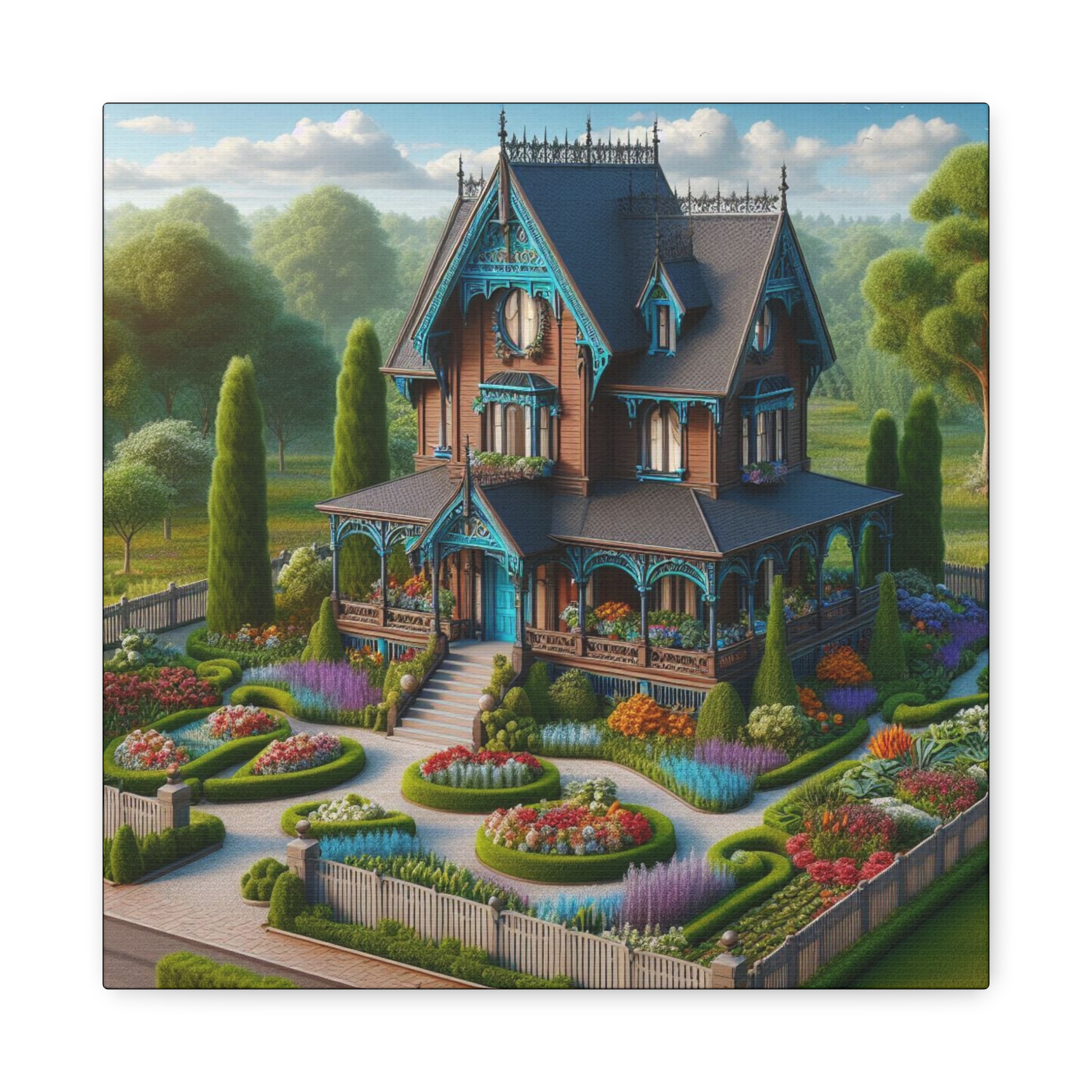 This canvas print from the Dream Homes series transforms the concept of home into a visual daydream. Rich color palettes, refined architectural details, and lush gardens create a scene that feels both familiar and fantastical. Designed to evoke comfort, optimism, and quiet luxury, each piece brings a sense of warmth and imaginative escape into any space.