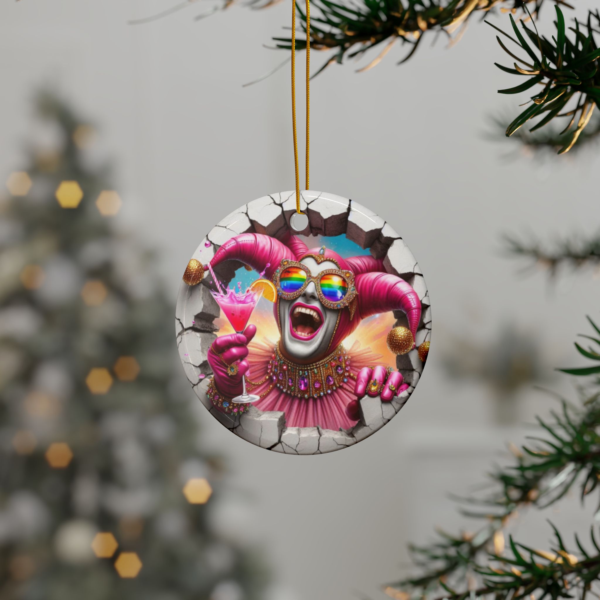 With a smooth glossy finish and vibrant double-sided artwork, these ornaments bring a bold artistic presence to any setting—whether displayed in your home, studio, office, or creative sanctuary. Crafted from 100% ceramic and finished with a gold hanging string, they offer a refined way to showcase visionary art in a compact, collectible form.