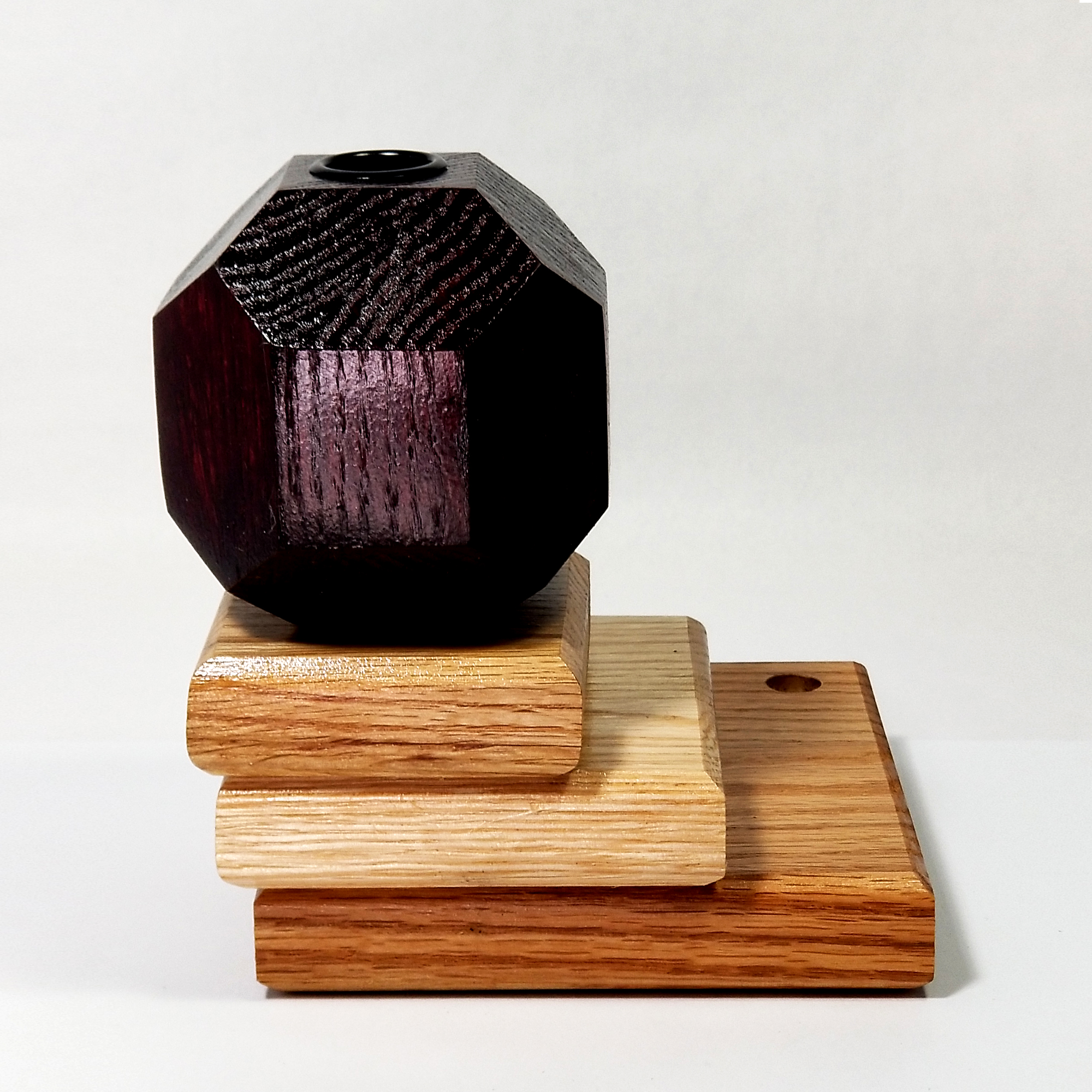 – Features a 3.5″ faceted, dye-infused oak “gemstone” centerpiece