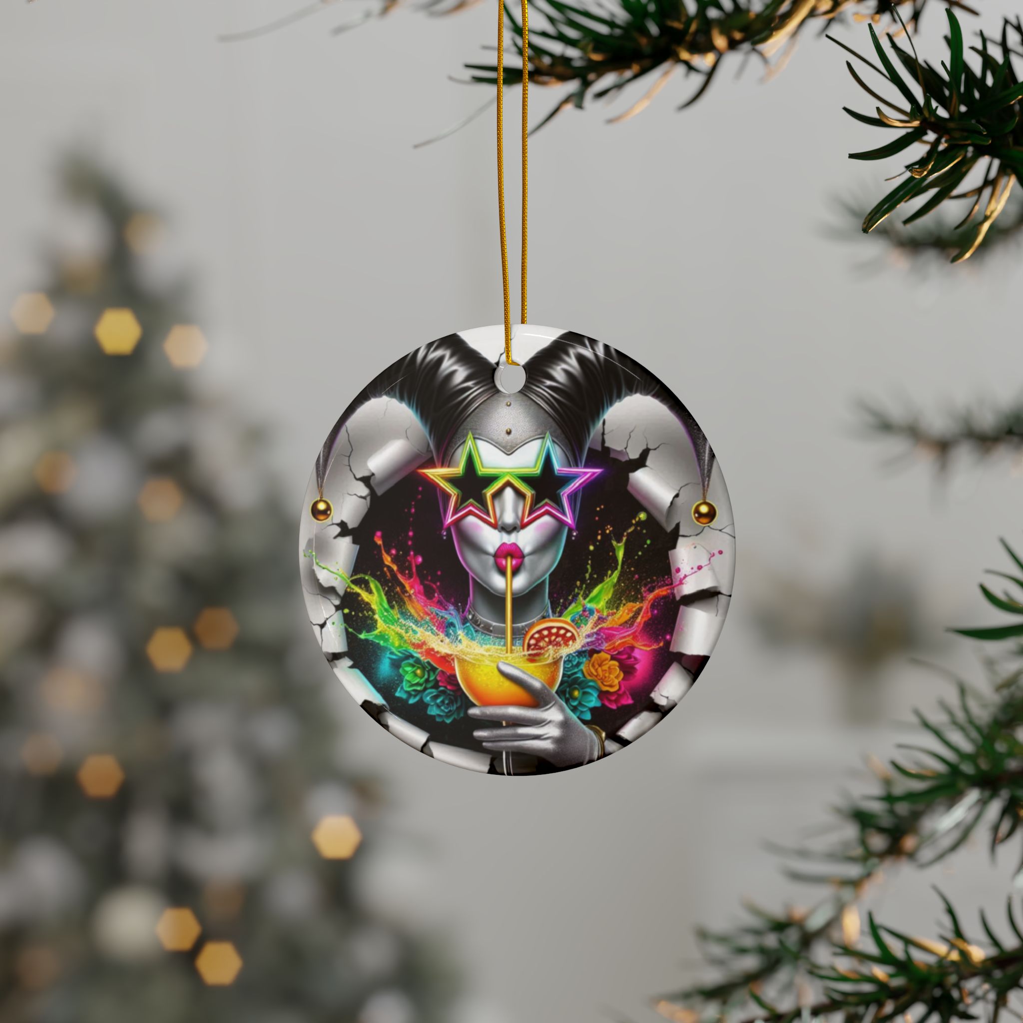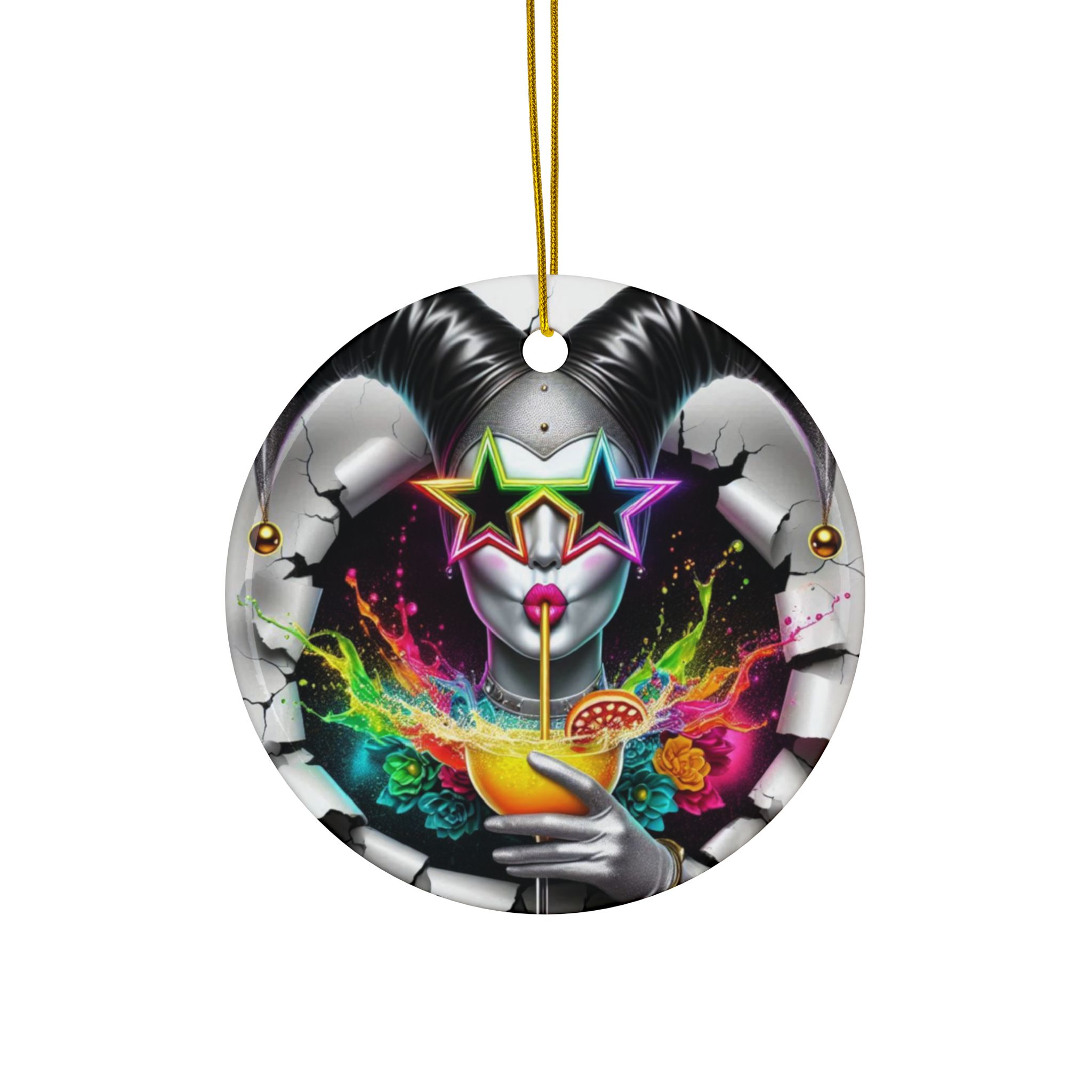 STARRY SPLASH – Question Everything – Ceramic Ornament – Jesterama Jesters Collection